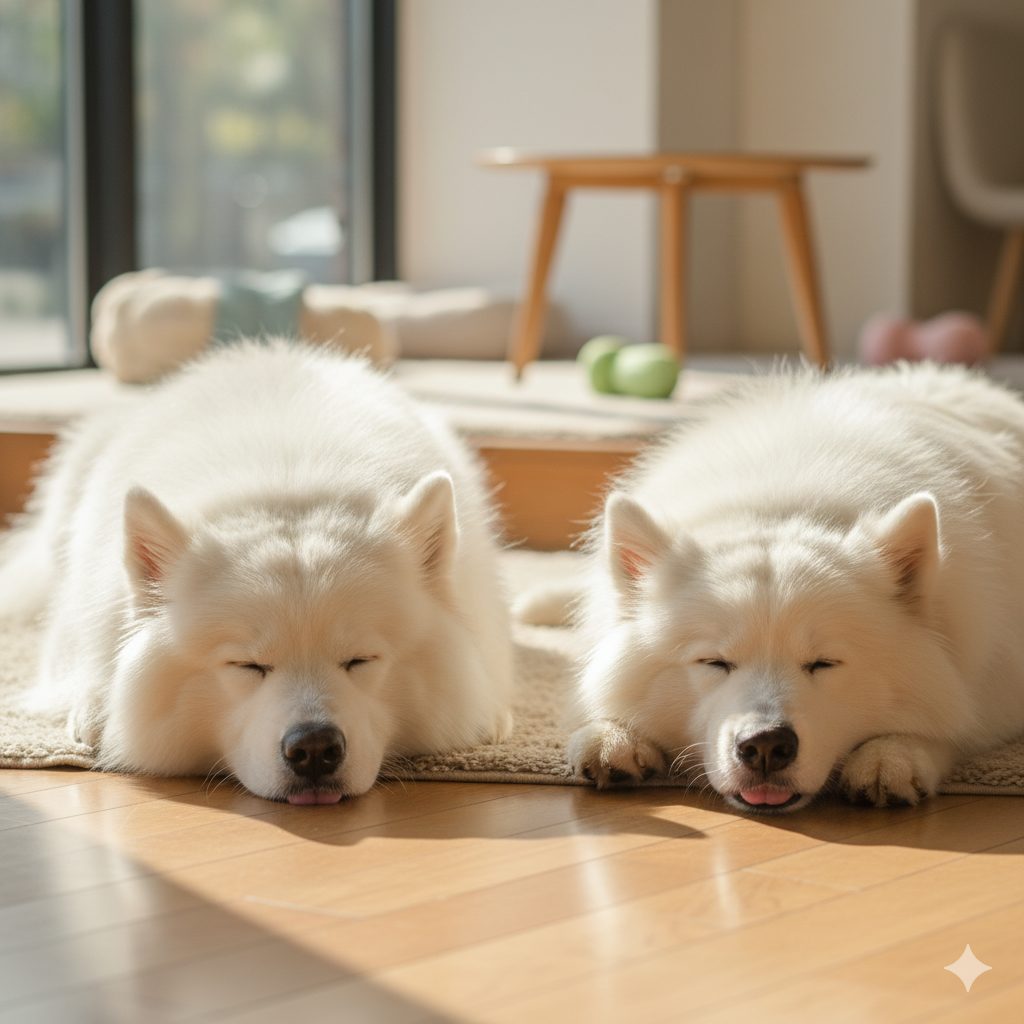 店内はアットホームで、まるで「第2の家」に帰ってきたようなリラックスした空間です。サモエドたちと一緒に、笑顔と癒しのひとときを過ごしませんか?